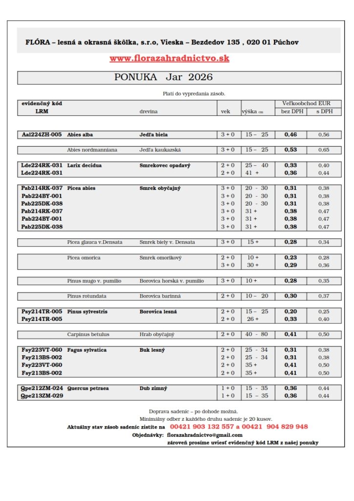 Naša produkcia lesného reprodukčného materiálu je viazaná na Osvedčenie pre prácu s Lesným reprodukčným materiálom (LRM) číslo: 2/2002-710.
